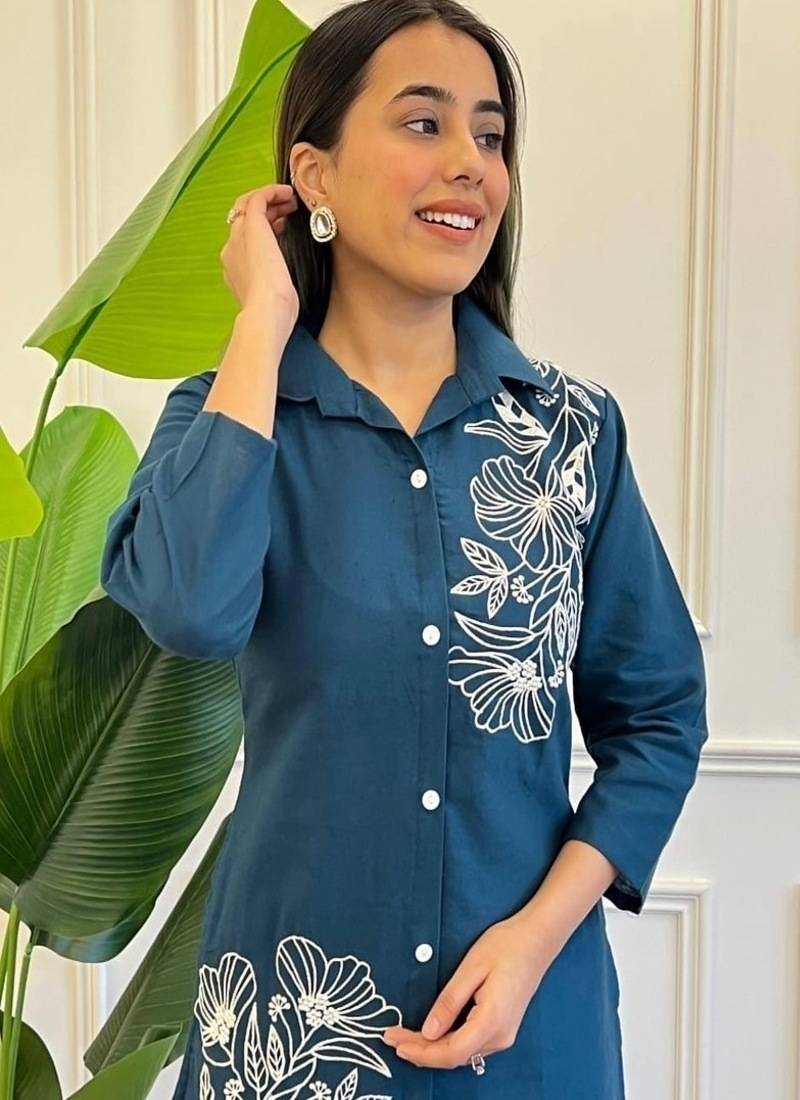 | Product Name | Blue Floral Printed Collar Neck Pure Cotton Co Ord Set | |