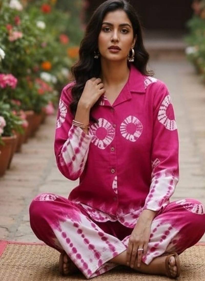 | Product Name | Pink Floral Printed Collar Neck Pure Cotton Co Ord Set | |