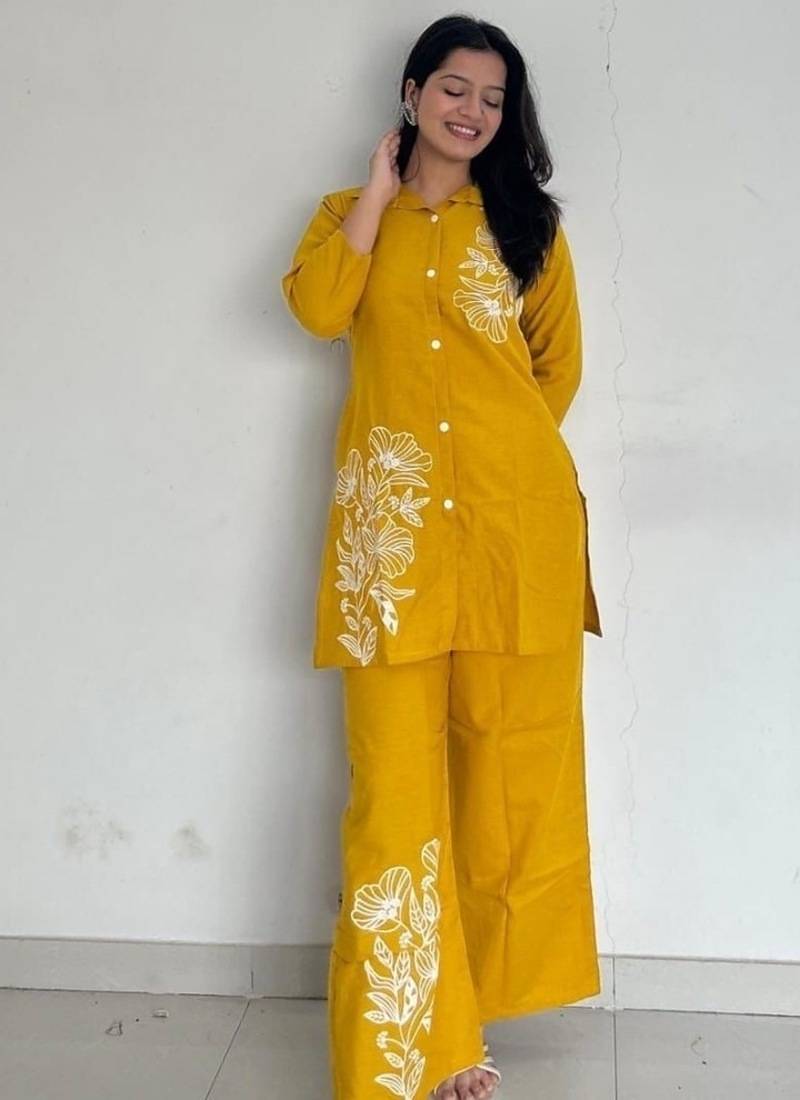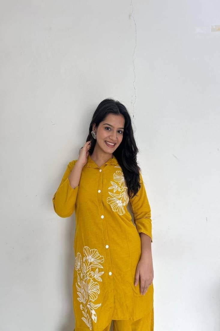 | Product Name | Yellow Floral Printed Collar Neck Pure Cotton Co Ord Set | |