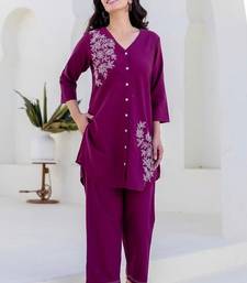 | Product Name | Floral Printed Purple V Neck Pure Cotton Co Ord Set | |