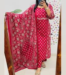 | Product Name | Floral Printed Red V Neck Cotton Floral Kurta With Trousers & Dupatta Set | |