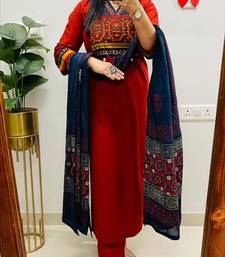 | Product Name | Red Embroidered V Neck Pure Cotton Kurta Trouser Dupatta Set | |