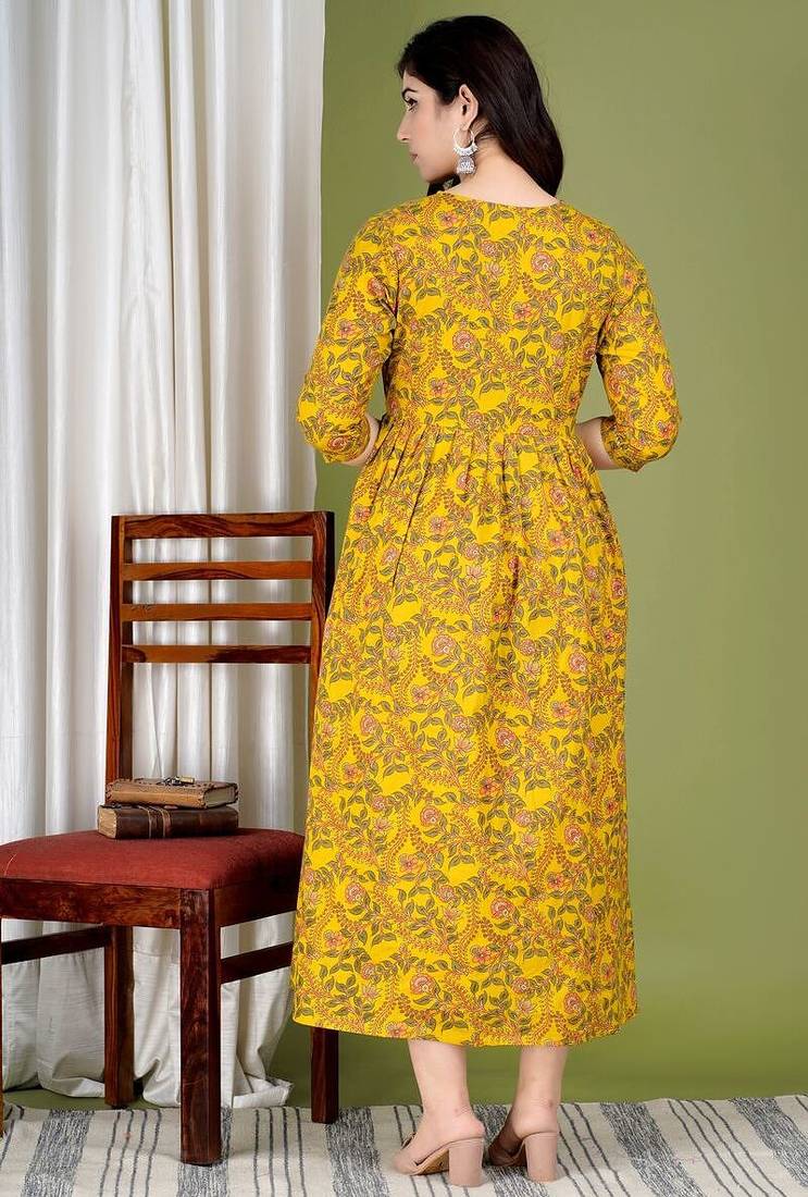 | Product Name | Women Floral Printed Round Neck Pure Cotton Maternity Dress | |