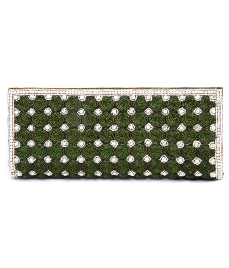 | Product Name | Abqa Olive Green Crystal Studded Clutch With Art Silk Thread Work. | |