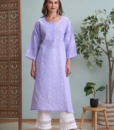 Ada hand embroidered mauve cotton lucknowi chikankari straight kurta a411790