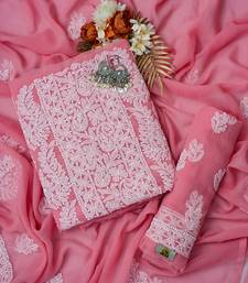 Hand embroidered salmon peach georgette lucknowi chikankari indian women unstitched suit piece