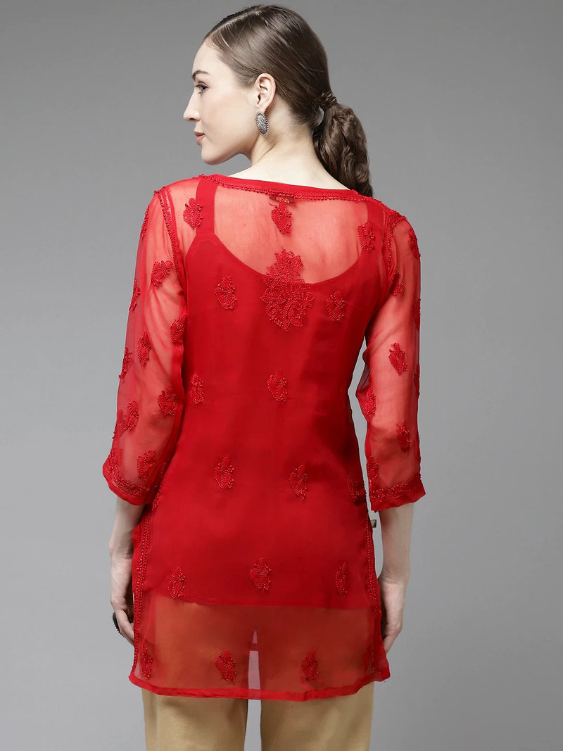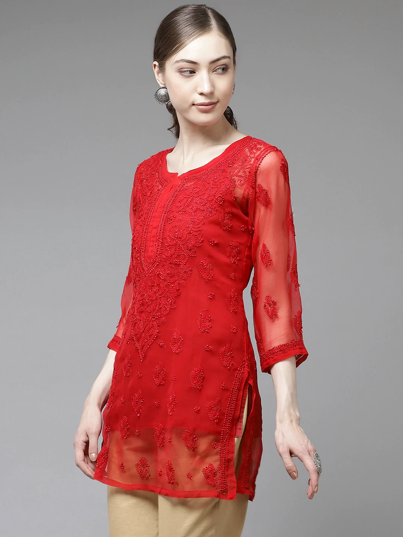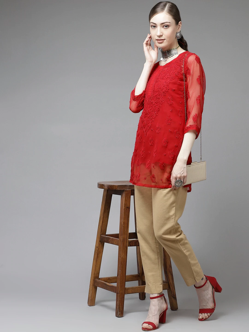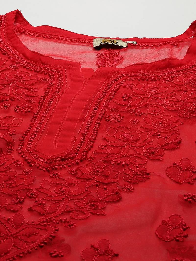 | Product Name | Ada Women Hand Crafted Red Georgette Lucknowi Chikankari Indian Kurti With Slip A911140 | |