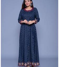 | Product Description | Addiction Presenting Stunning Ethnic Anarkali With Navy Gold Printed Rayon Kurti Has Embroidery Embellishment At Neck. |