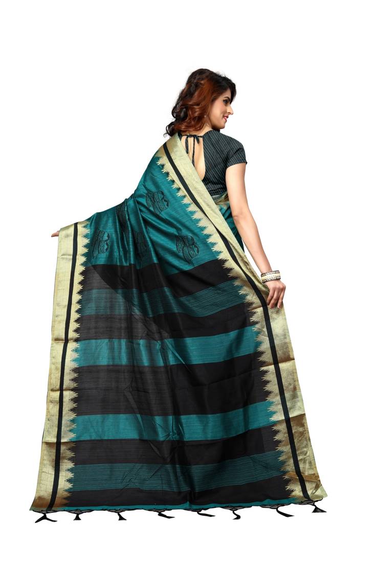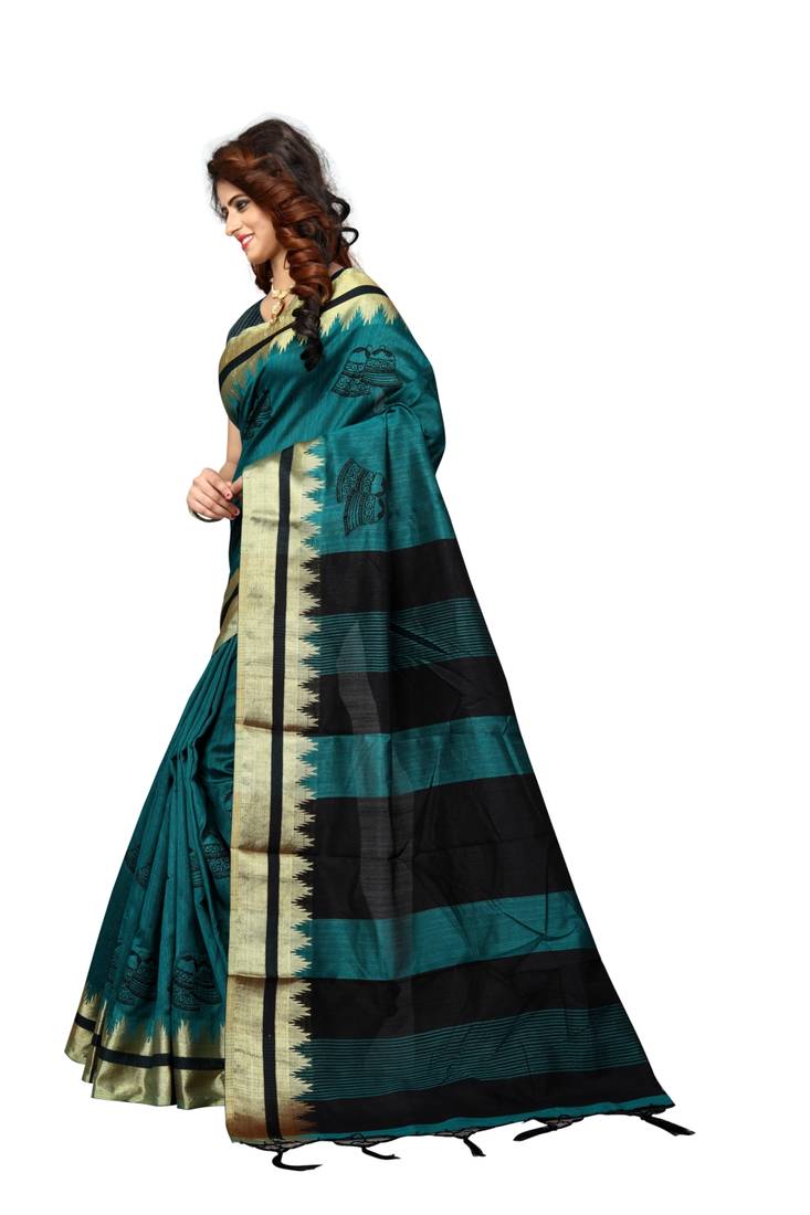 | Product Name | Teal Printed Cotton Poly Saree With Blouse | |