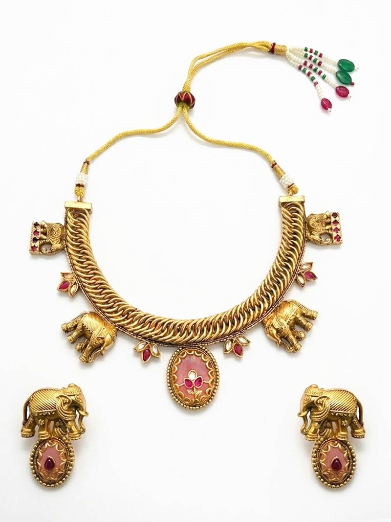 | Product Name | Elephant Design Pota Stone Traditional Necklace Set | |