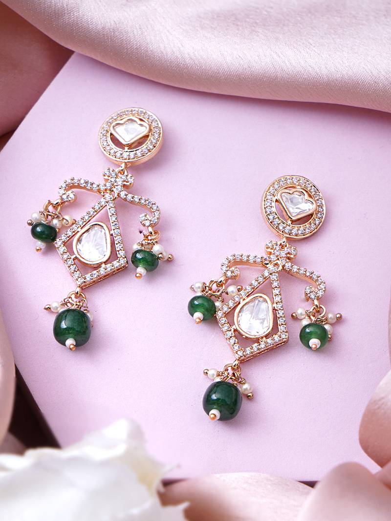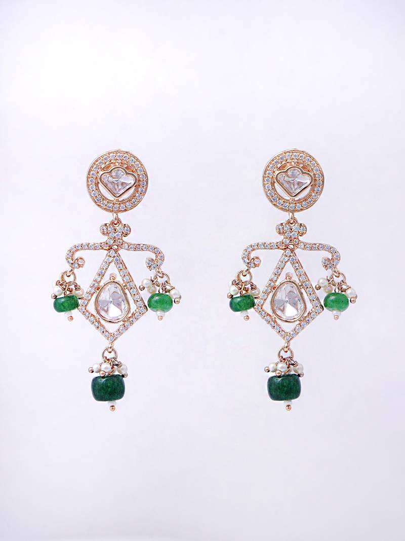 Women bold kundan earrings featuring uncut and kundan stonework