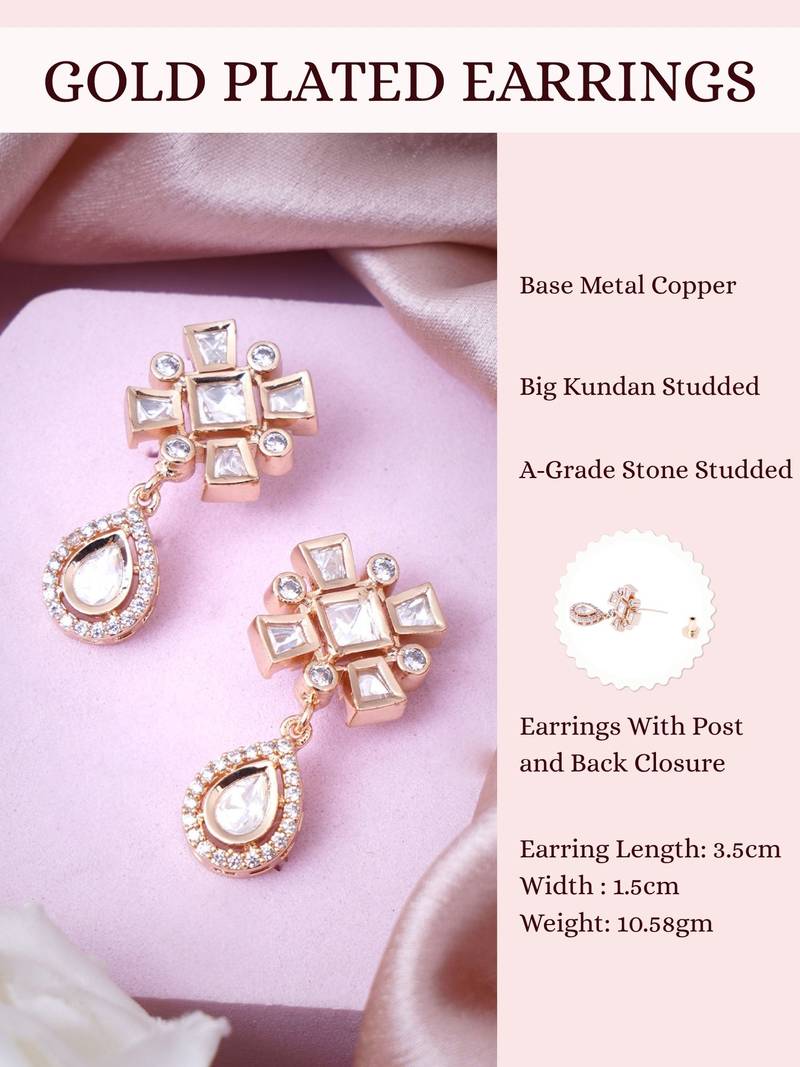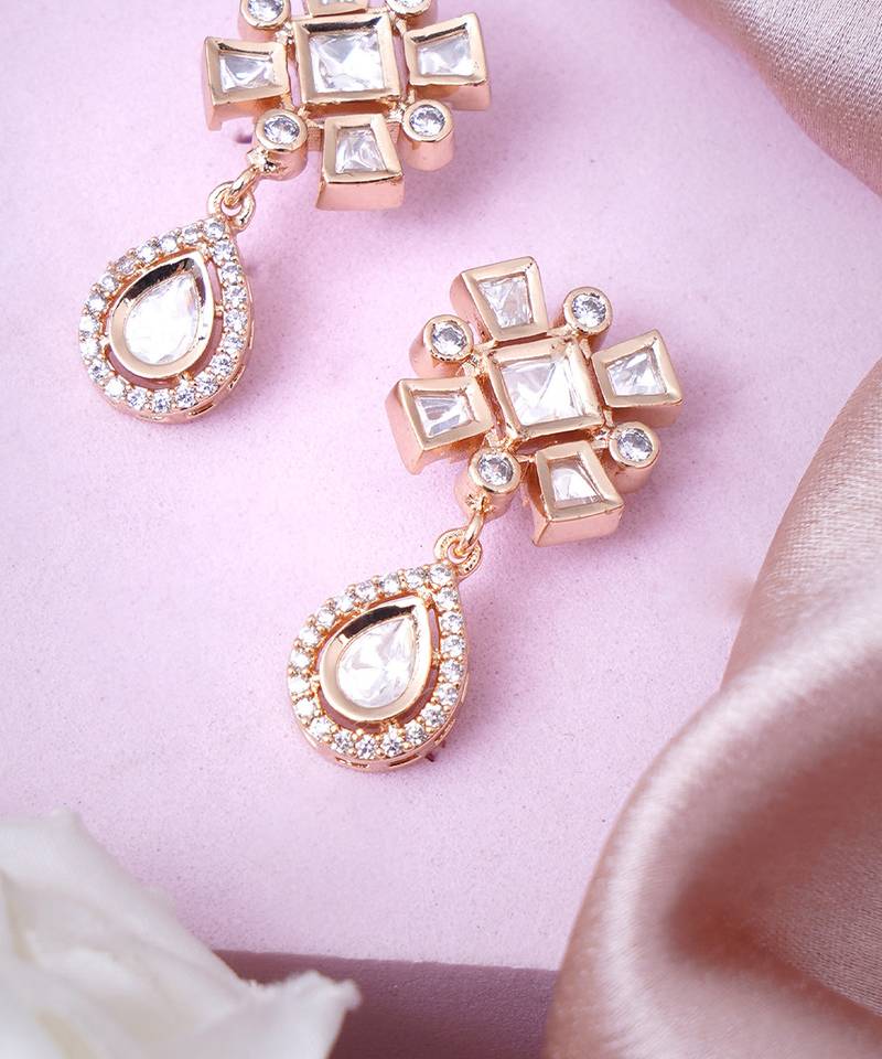 | Product Name | Women Drop Earrings In Rose Gold Finish With Diamond Stones | |