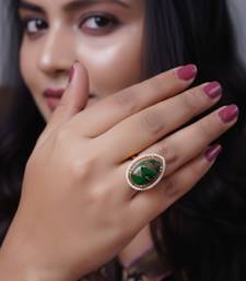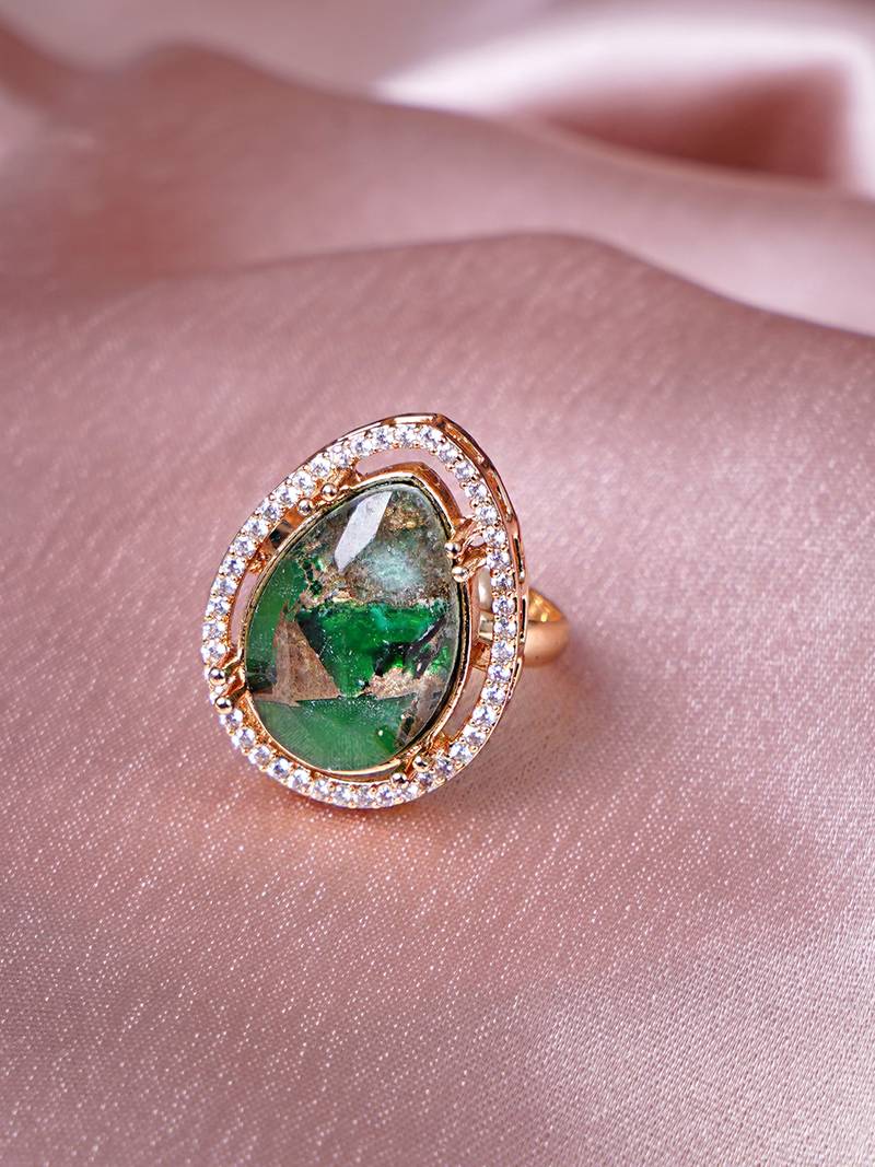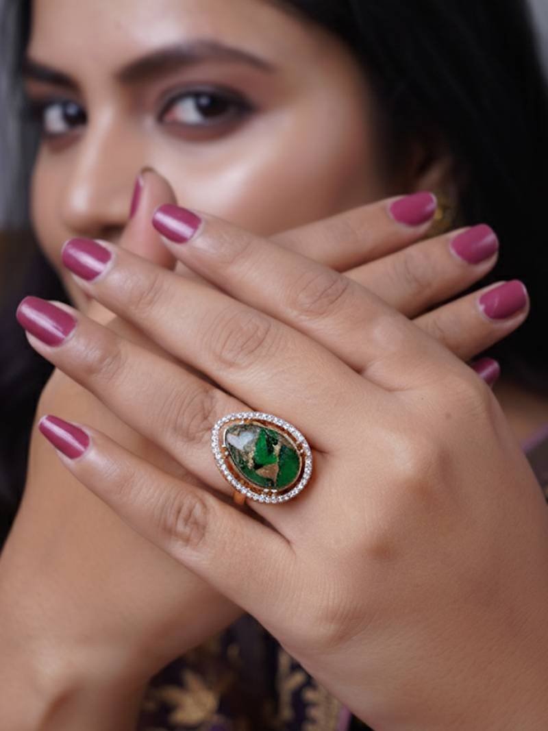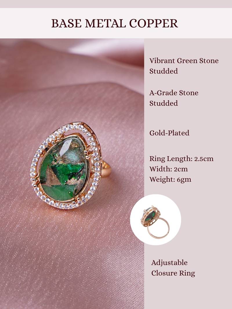 | Product Name | Women Elegant Green Agate Adjustable Ring Featuring Gold Leaf In Vintage Style | |