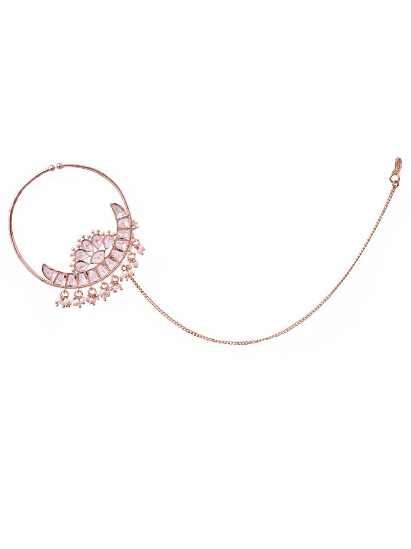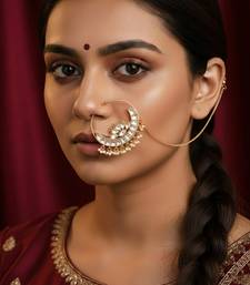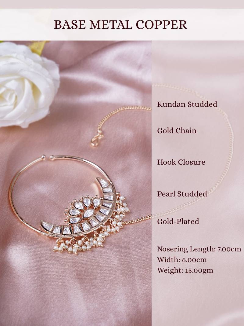 | Product Name | Women Elegant Half Moon Gold Plated Noserings With Kundan & White Beads | |