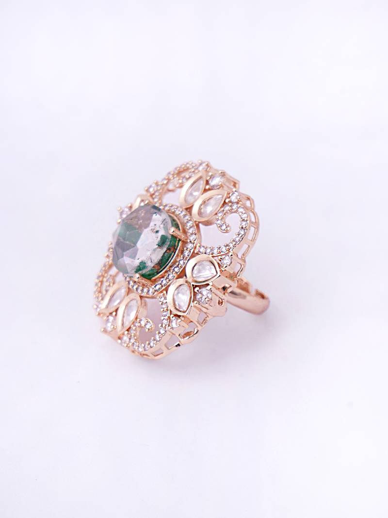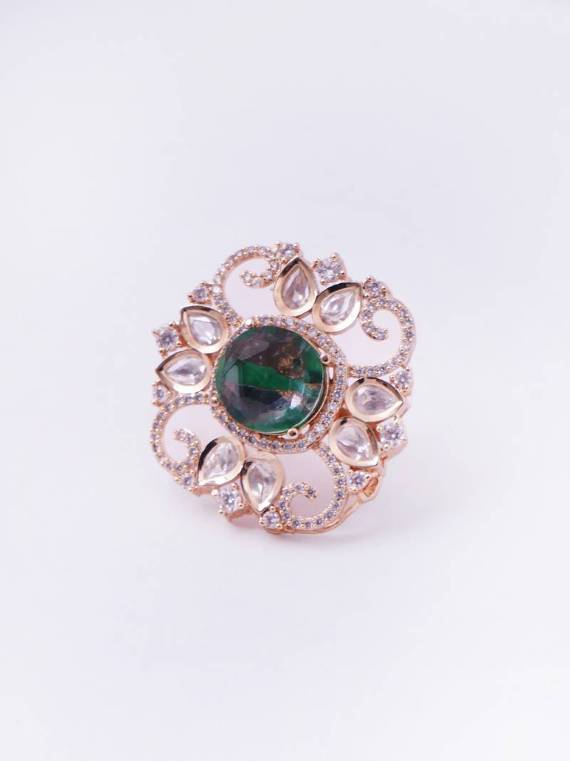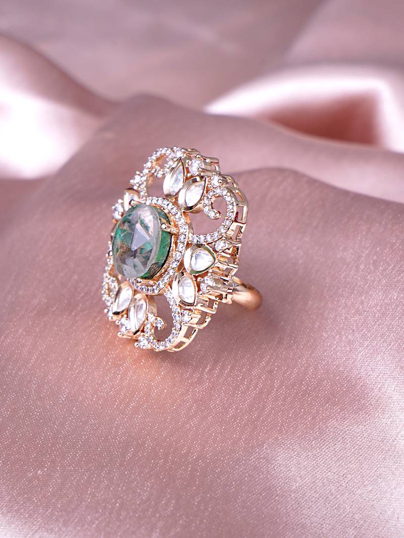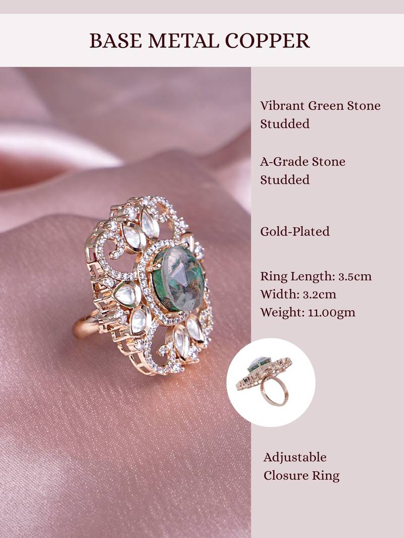 | Product Name | Women Gold Plated Adjustablering With Luminous Green Emerald | |