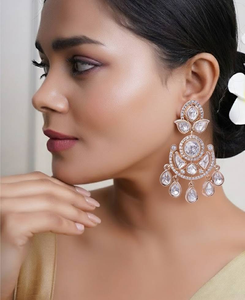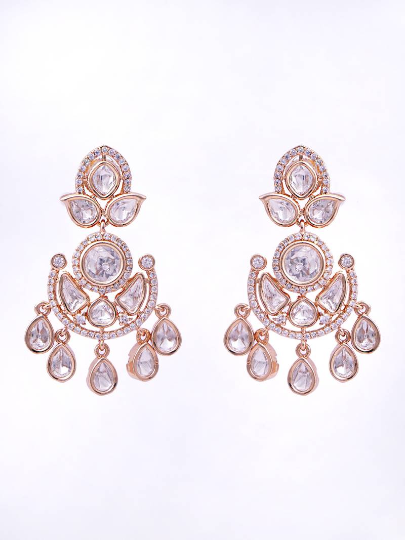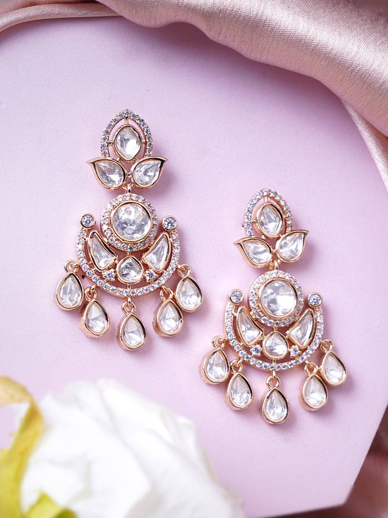 | Product Name | Women Pearl And Kundan Studded Dangle Earrings In Rose Gold Finish | |