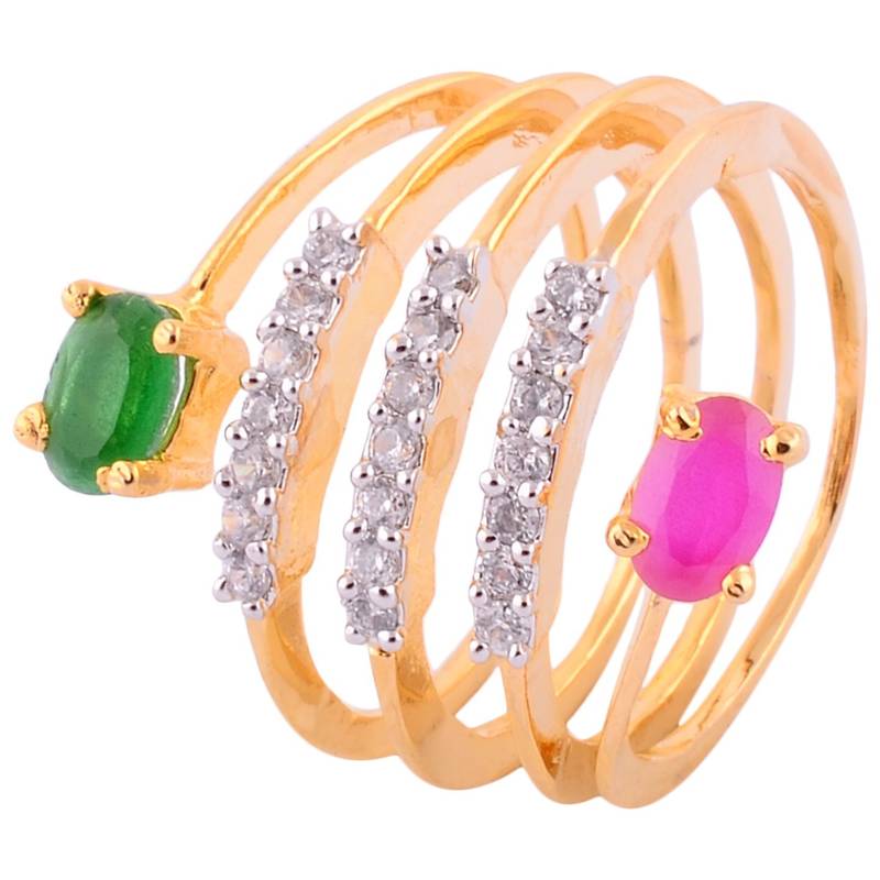 | Product Description | Ruby&Emerald Spiral Ring With American Diamond |