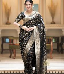 Black soft art silk banarasi jacuard work designer party wear saree with unstitched blouse piece