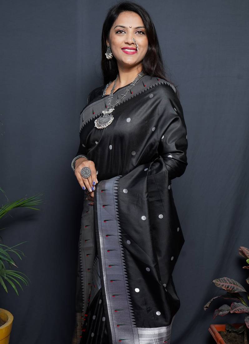 Black soft silk blend banarasi jacuard work designer party wear saree with unstitched blouse piece