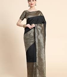 Black soft art silk banarasi jacuard work designer party wear saree with unstitched blouse piece