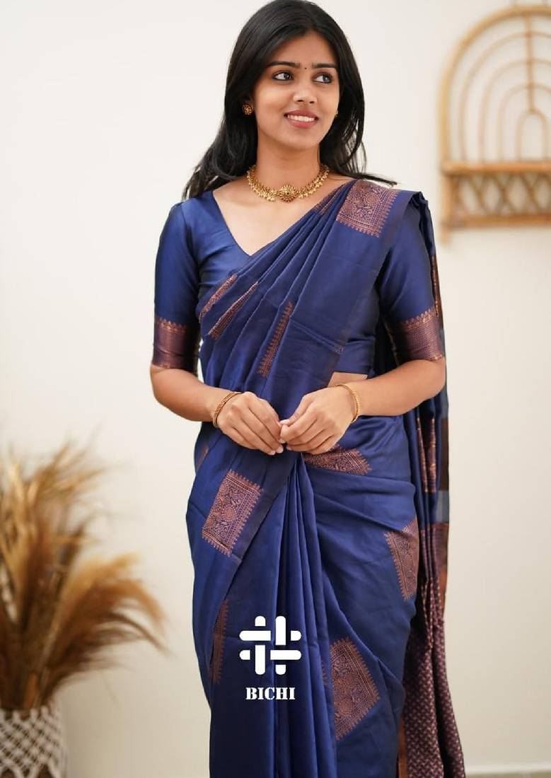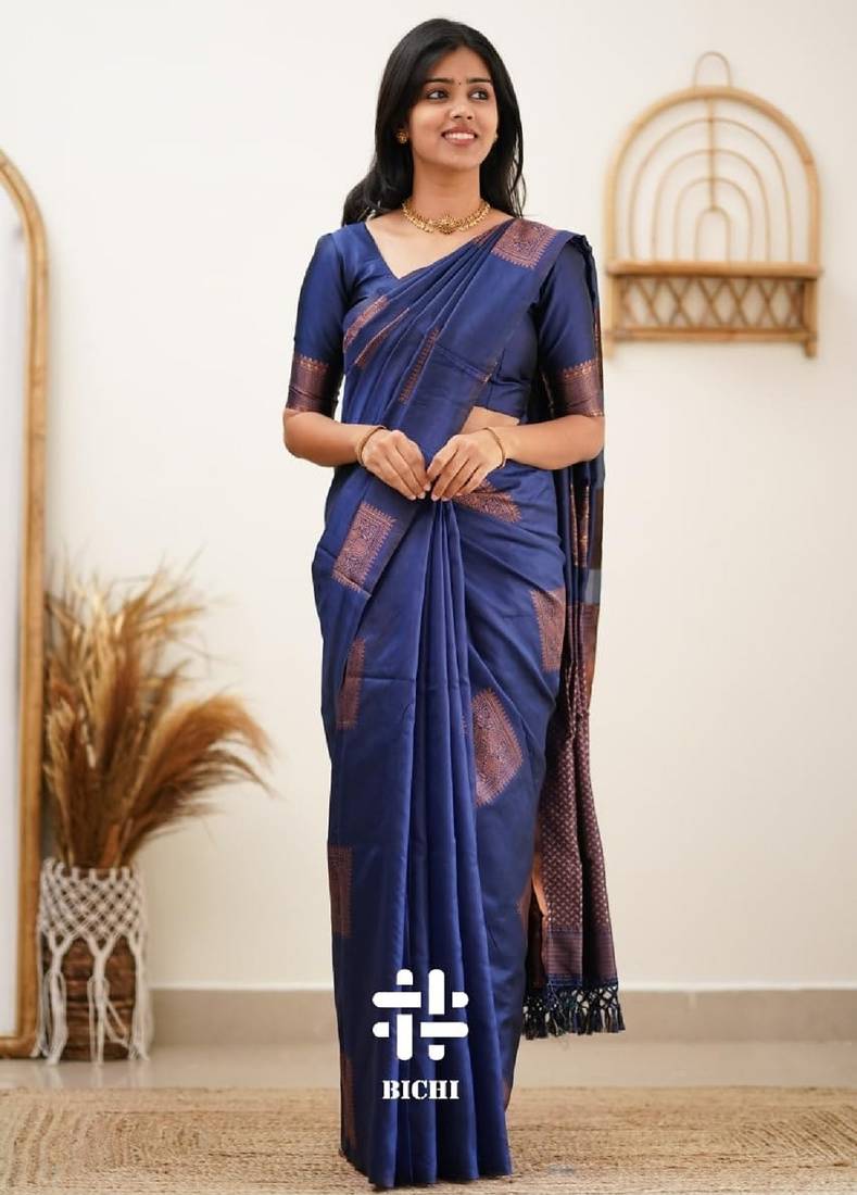 | Product Name | Blue Soft Silk Blend Banarasi Jacuard Work Designer Party Wear Saree With Unstitched Blouse Piece | |