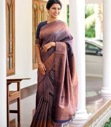 Blue soft silk blend banarasi jacuard work designer party wear saree with unstitched blouse piece