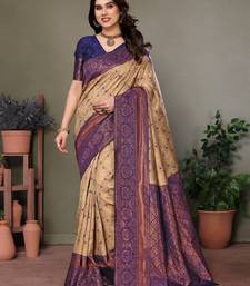 Cream blue soft silk blend banarasi jacuard work designer party wear saree with unstitched blouse piece