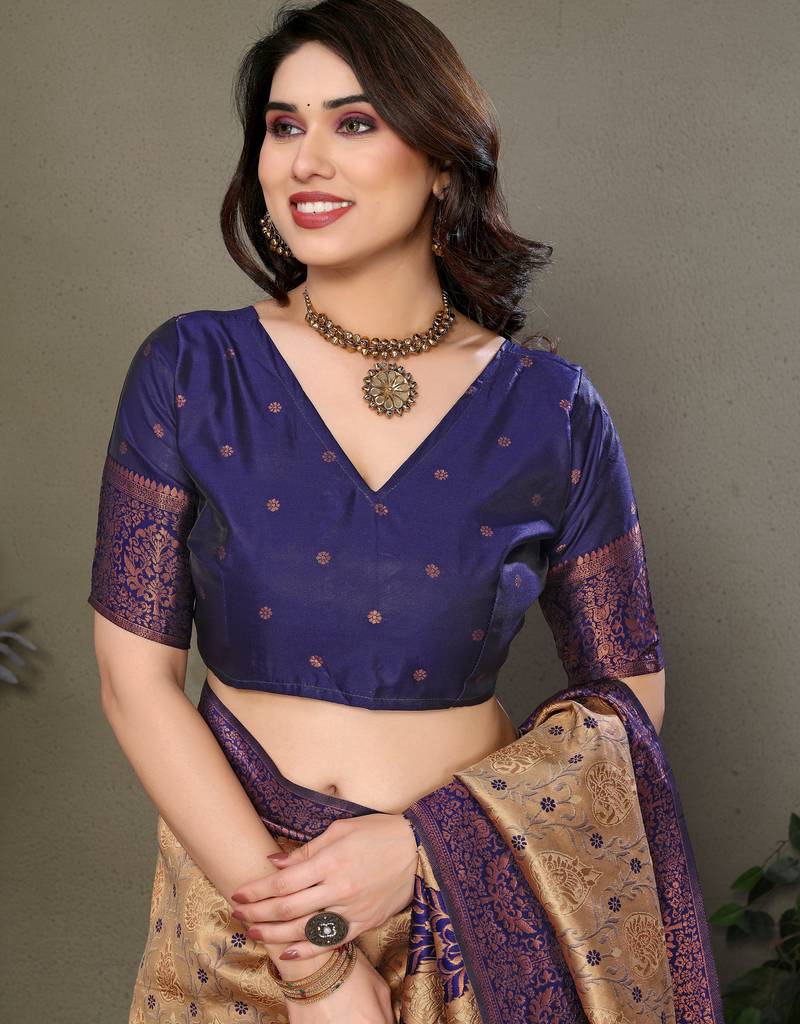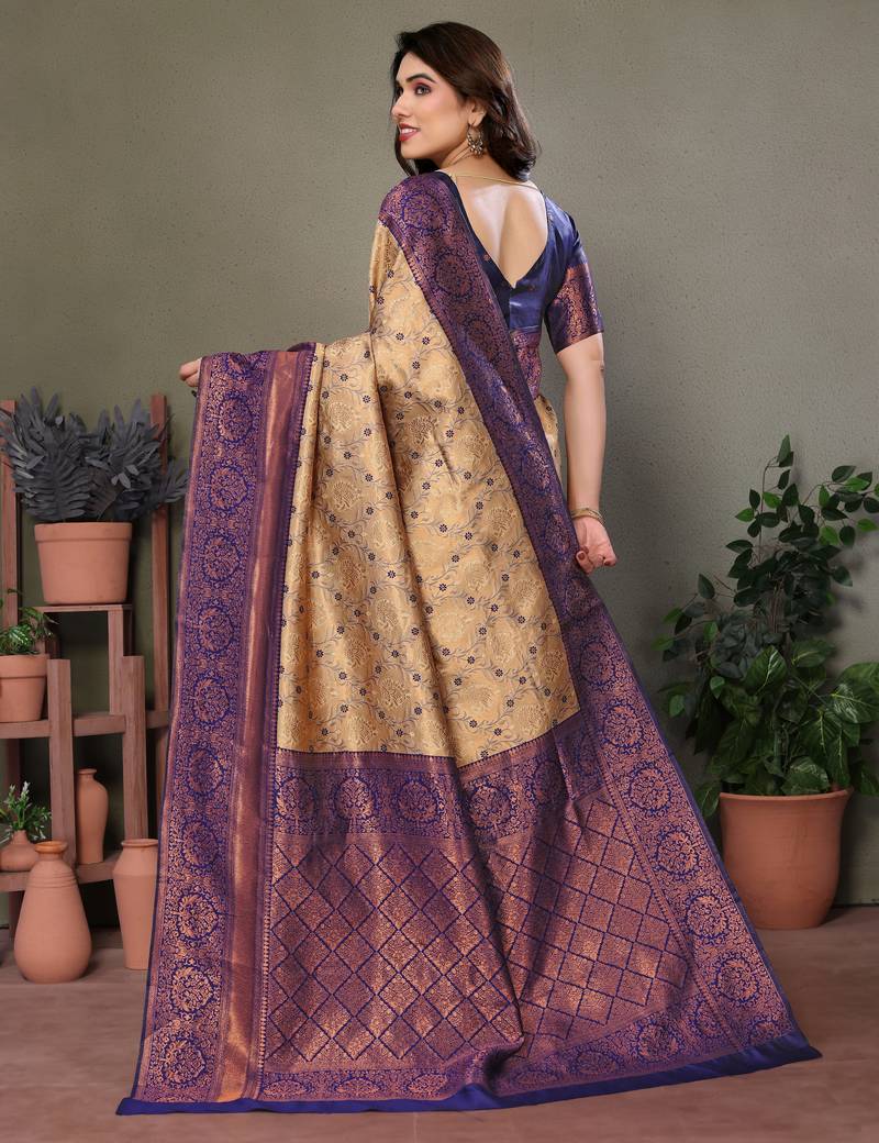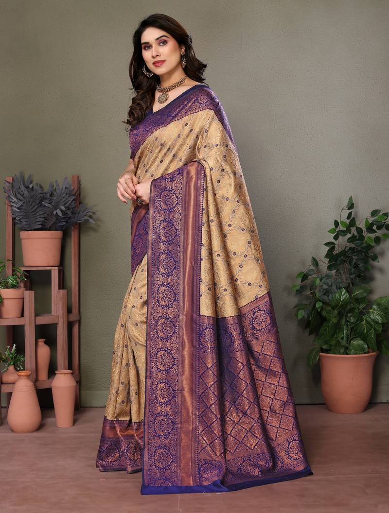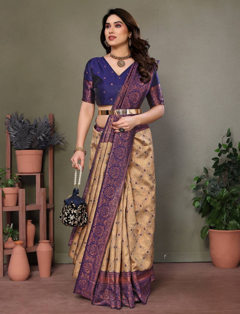 Product Name Cream Blue Soft Silk Blend Banarasi Jacuard Work Designer Party Wear Saree With Unstitched Blouse Piece