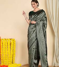 Green soft silk blend banarasi jacuard work designer party wear saree with unstitched blouse piece