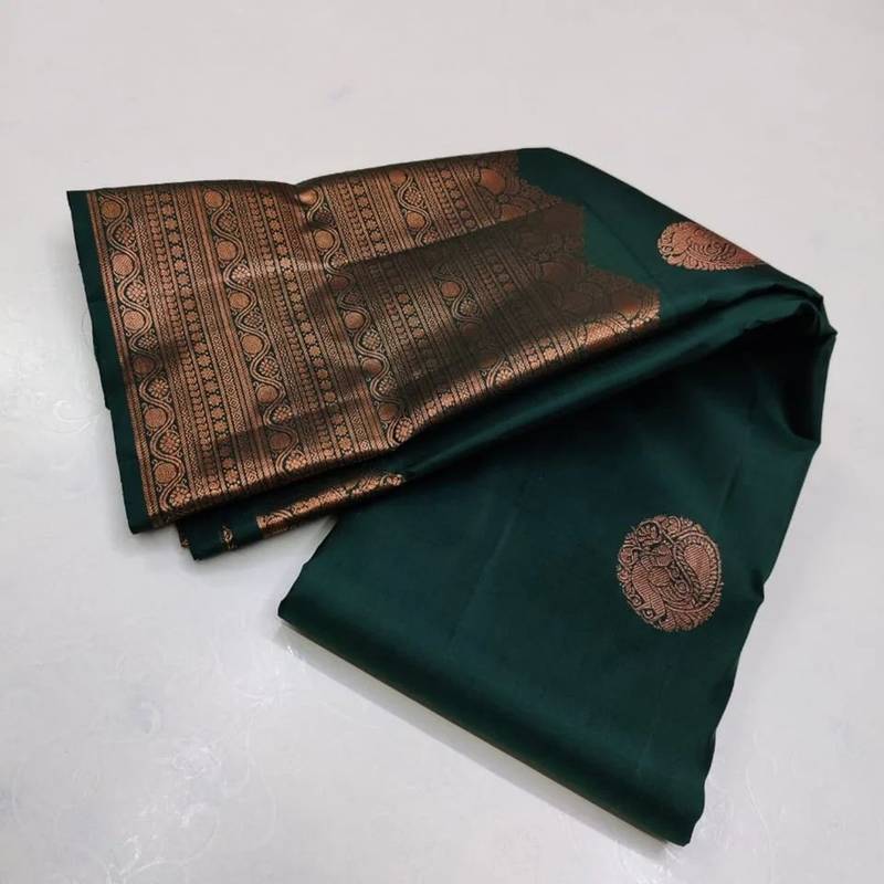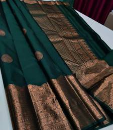 Green soft silk blend banarasi jacuard work designer party wear saree with unstitched blouse piece