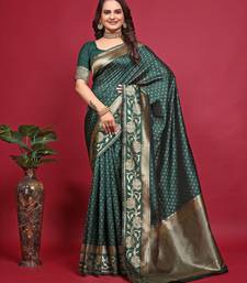Green soft silk blend banarasi jacuard work designer party wear saree with unstitched blouse piece
