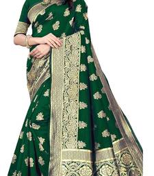 Green soft silk blend banarasi jacuard work designer party wear saree with unstitched blouse piece