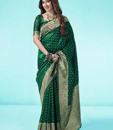Green soft silk blend banarasi jacuard work designer party wear saree with unstitched blouse piece