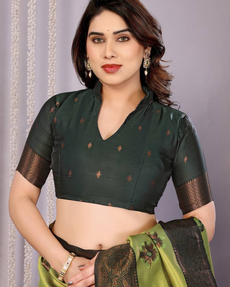 | • | Blouse | : | Color- Green / Fabric- Banarasi Silk |