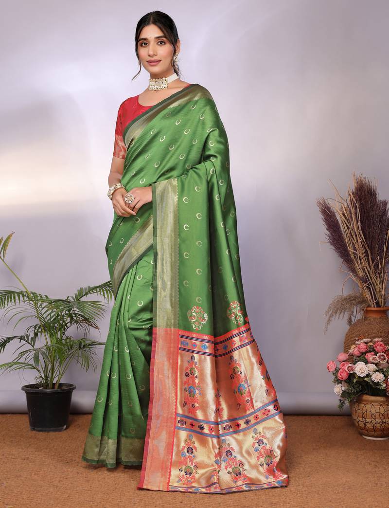 Light green soft art silk banarasi saree with blouse