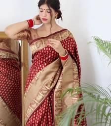 Maroon soft art silk banarasi jacuard work designer party wear saree with unstitched blouse piece