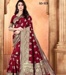 Maroon soft silk blend banarasi jacuard work designer party wear saree with unstitched blouse piece