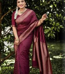 Maroon soft silk blend banarasi jacuard work designer party wear saree with unstitched blouse piece