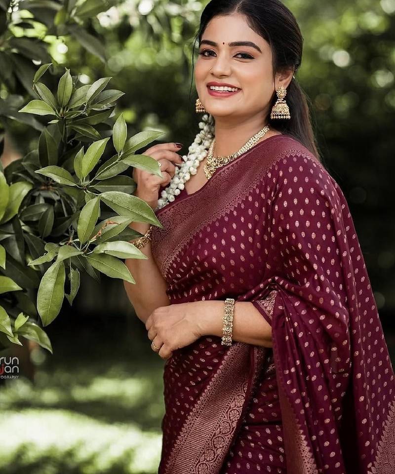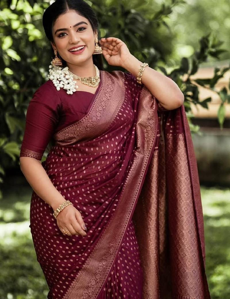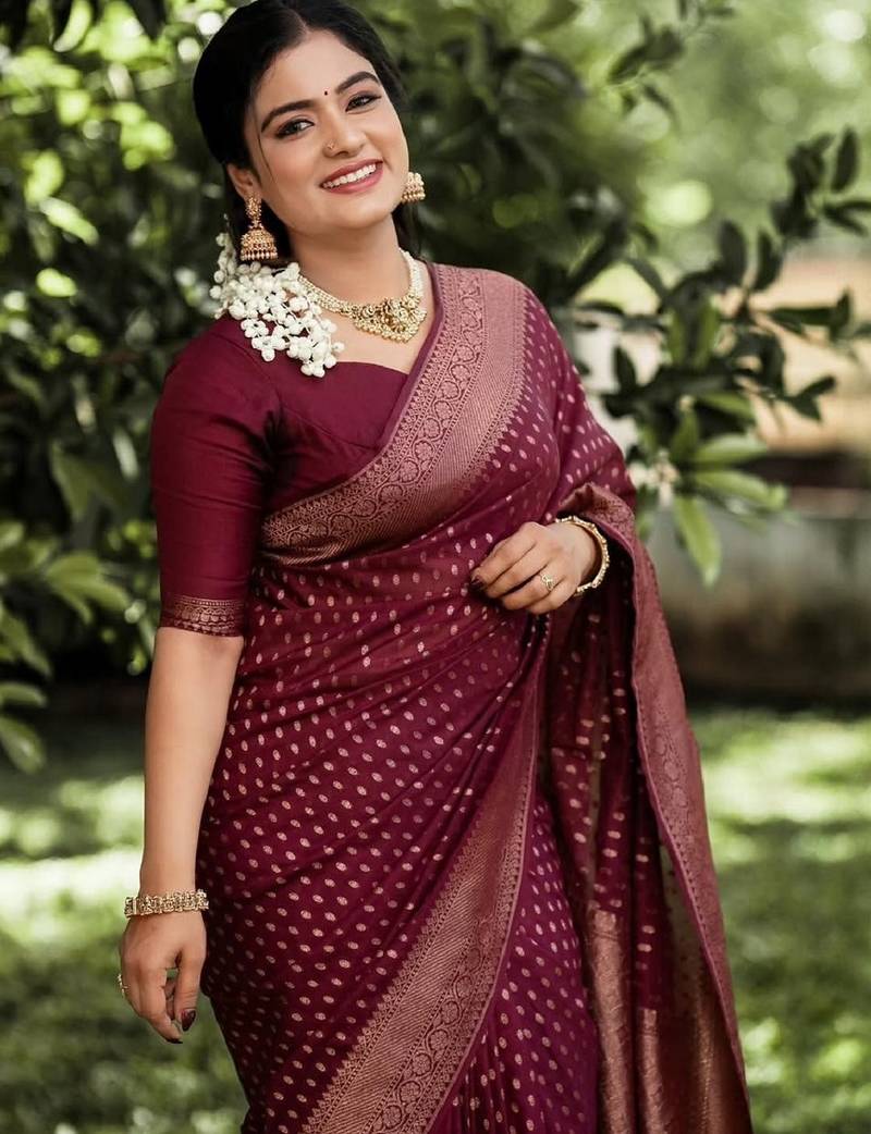 | Product Name | Maroon Soft Silk Blend Banarasi Jacuard Work Designer Party Wear Saree With Unstitched Blouse Piece | |
