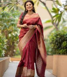Maroon soft art silk banarasi jacuard work designer party wear saree with unstitched blouse piece