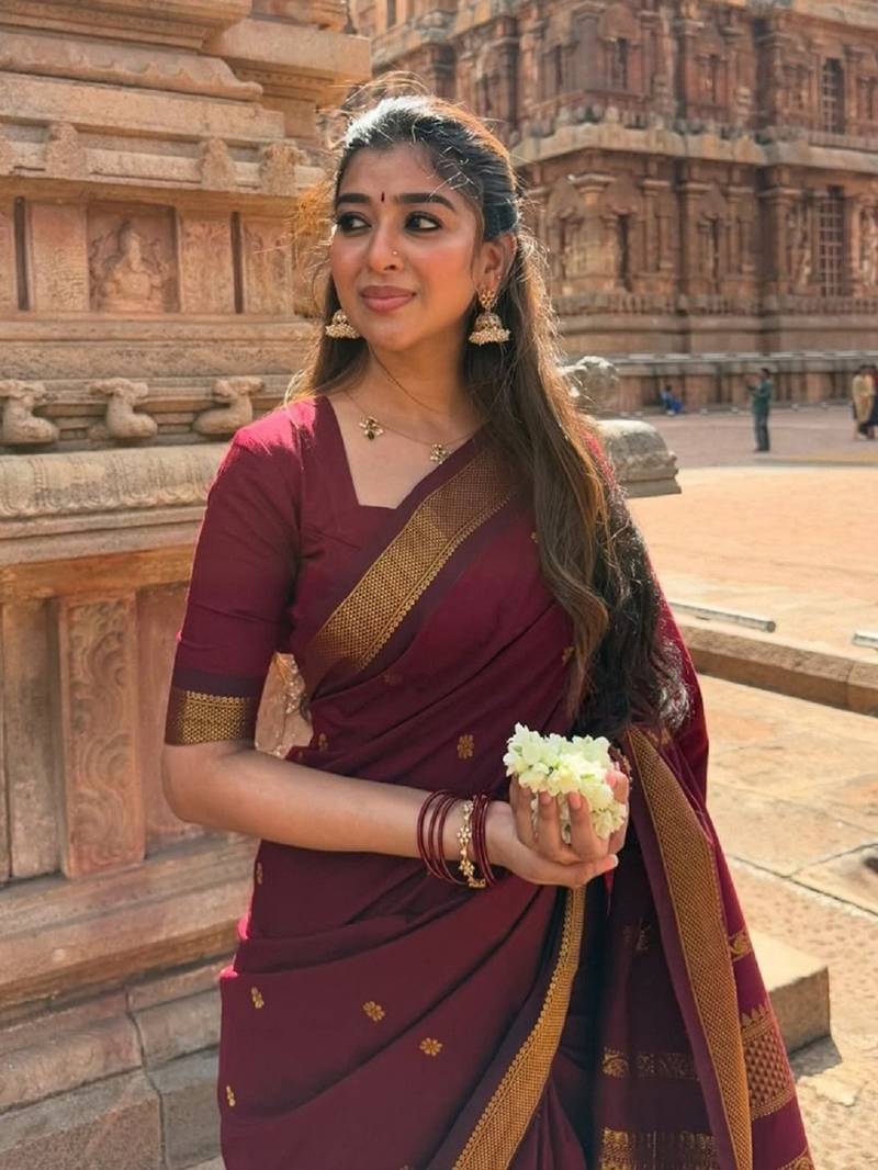 | • | Saree | : | Color- Maroon / Fabric- Banarasi Silk |