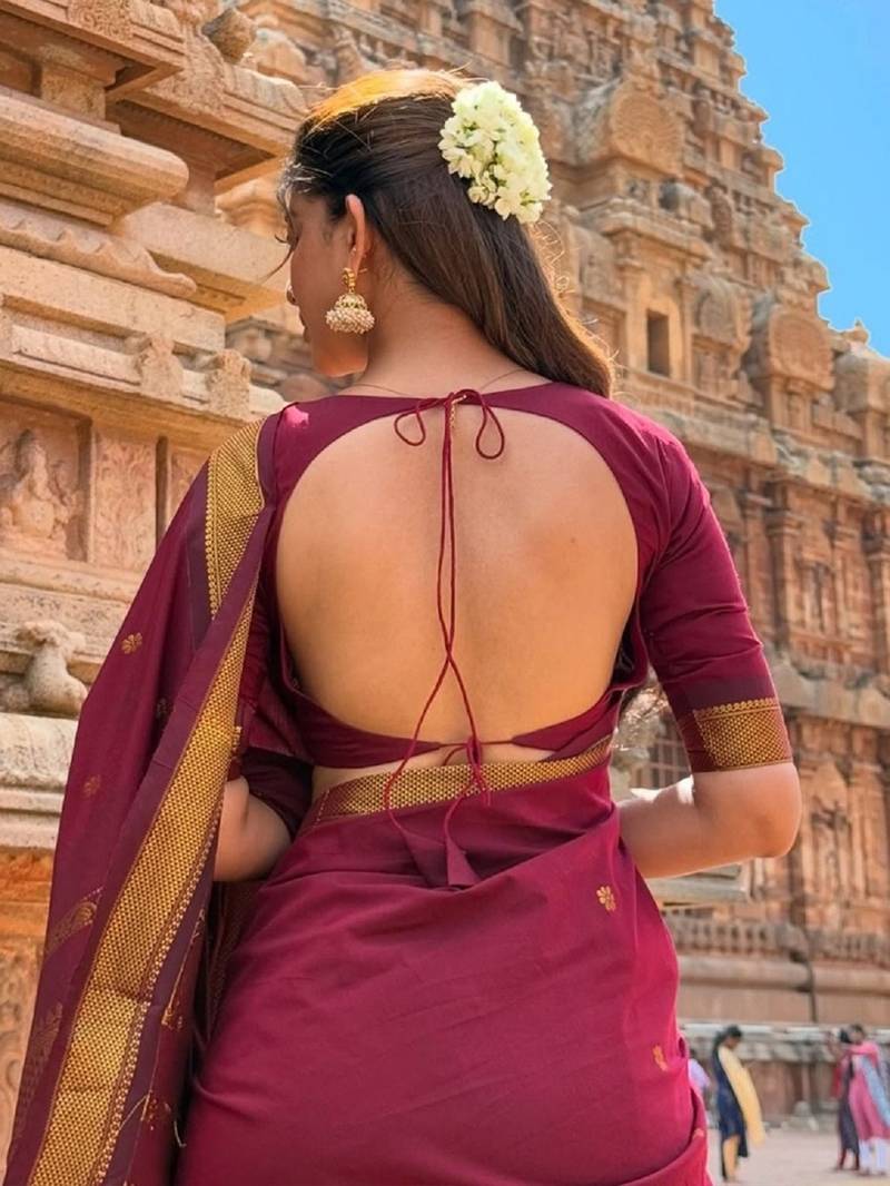 | • | Blouse | : | Color- Maroon / Fabric- Banarasi Silk |