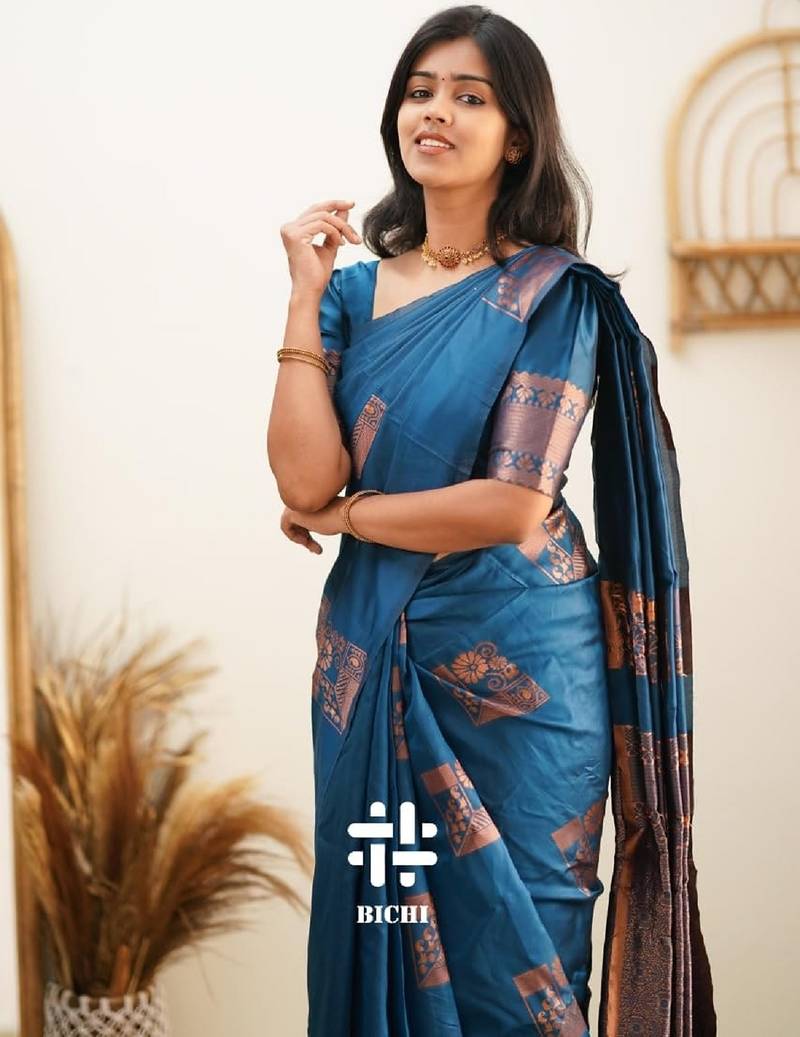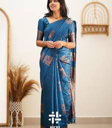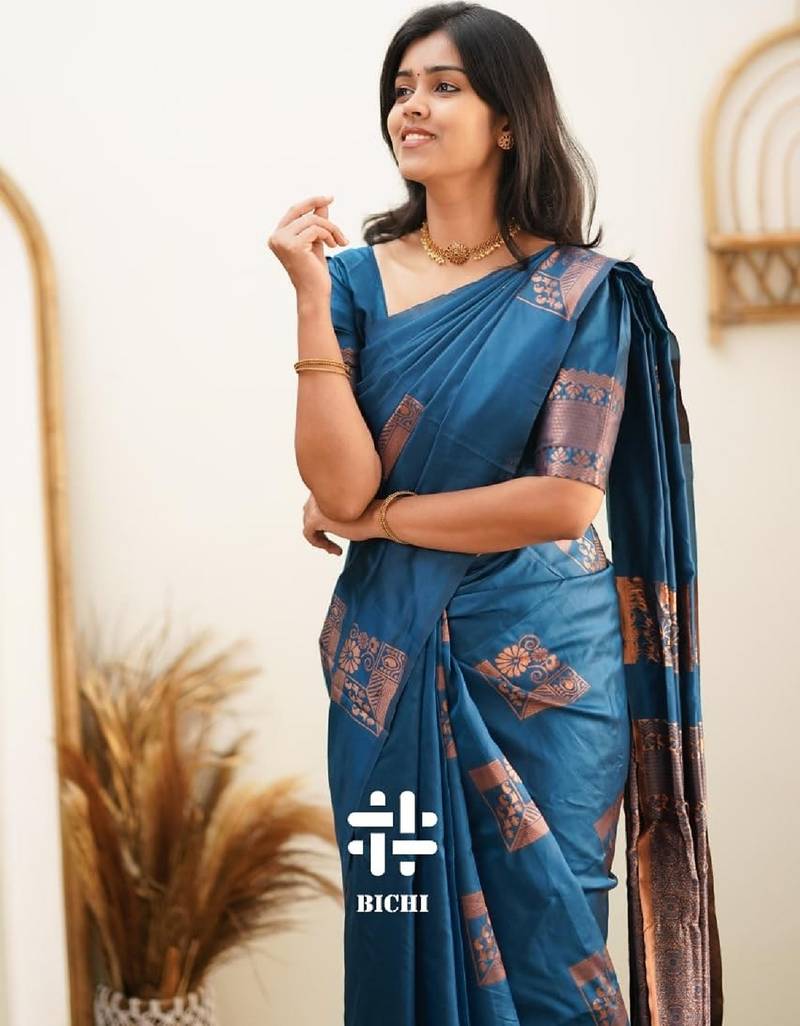 Morpich soft silk blend banarasi jacuard work designer party wear saree with unstitched blouse piece