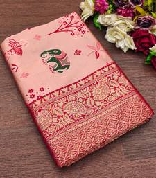 Peach soft silk blend banarasi jacuard work designer saree with blouse