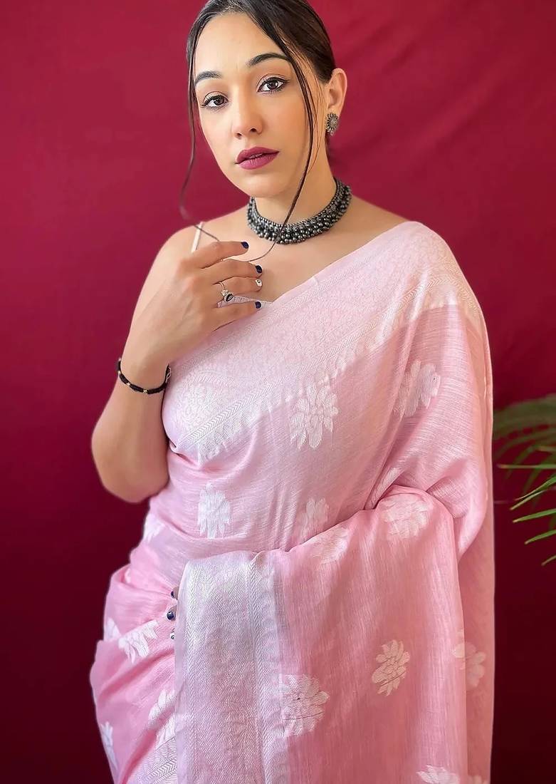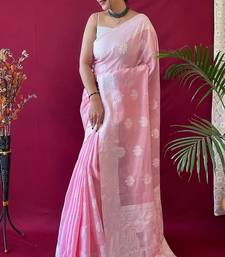 Pink soft art silk banarasi saree with blouse