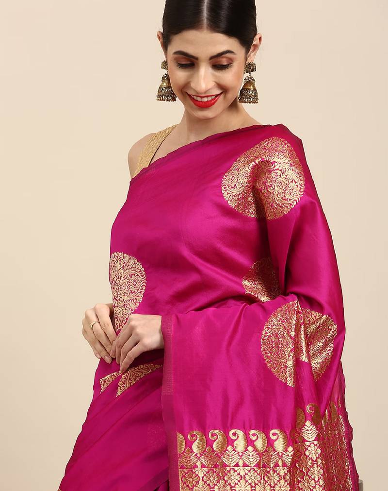 | Product Name | Pink Soft Silk Blend Banarasi Jacuard Work Designer Party Wear Saree With Unstitched Blouse Piece | |