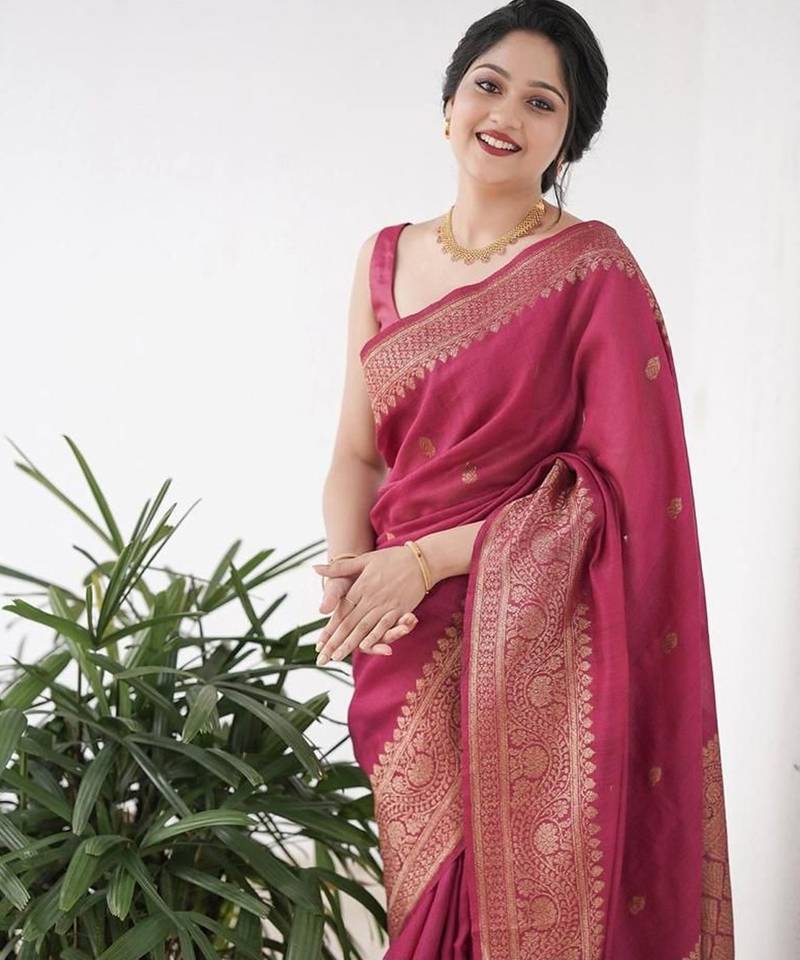 Comes With A 0.8 Meter Running Blouse Piece In Matching Wine Shade, Allowing You To Customize Your Blouse Style As Per Your Preference — From Classic Traditional Cuts To Modern Designer Patterns.