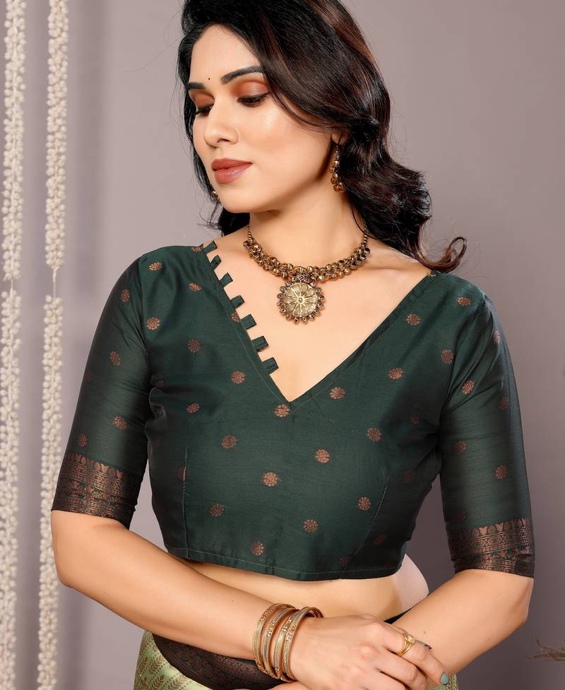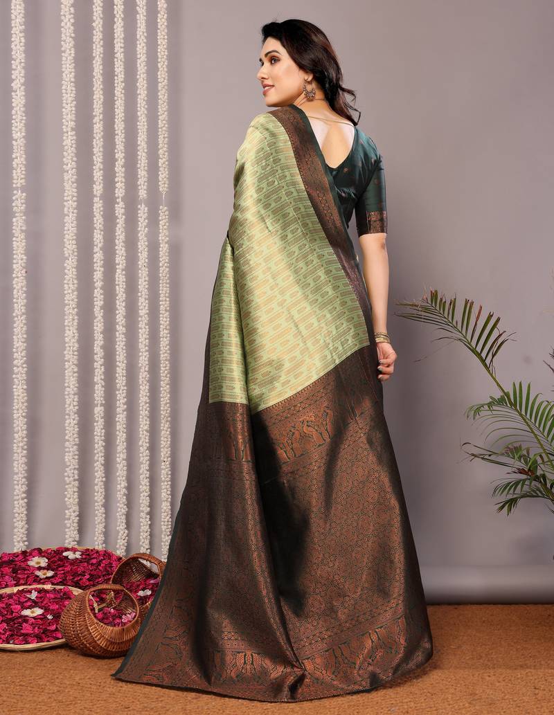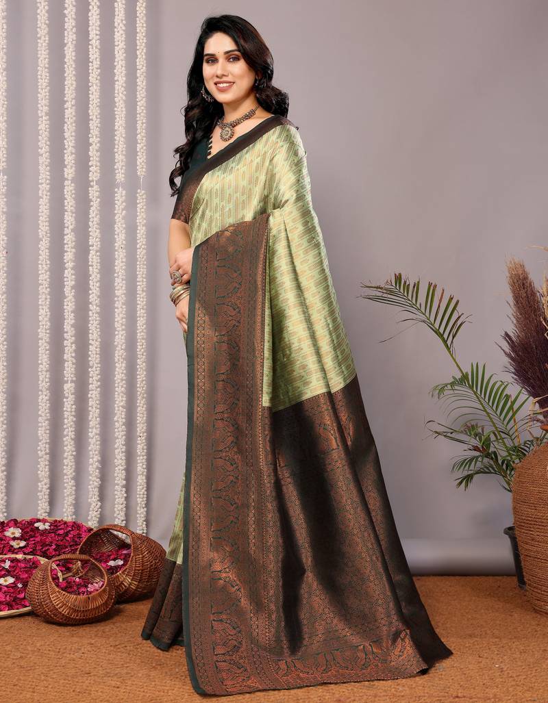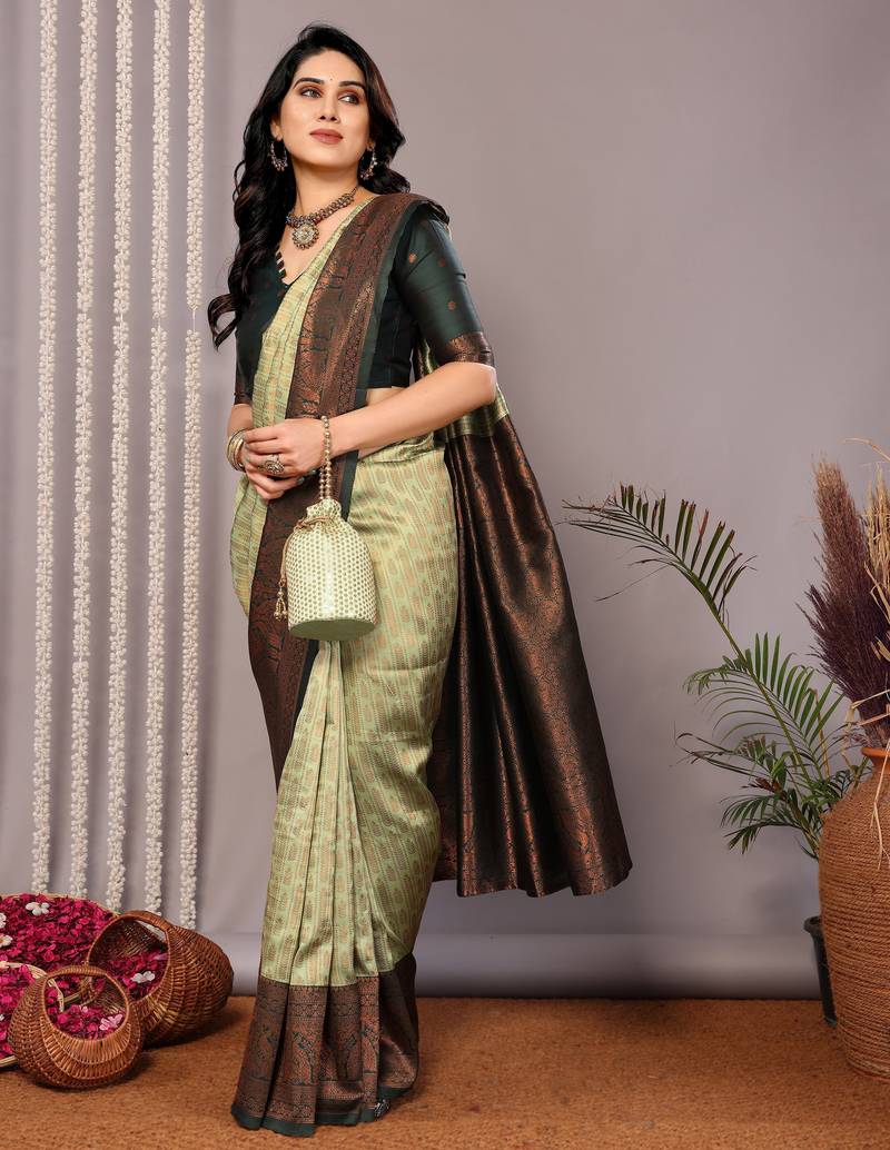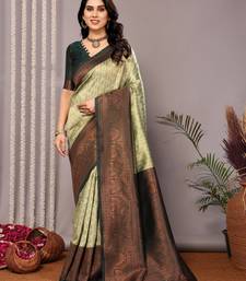 Pista green soft silk blend banarasi jacuard work designer party wear saree with unstitched blouse piece
