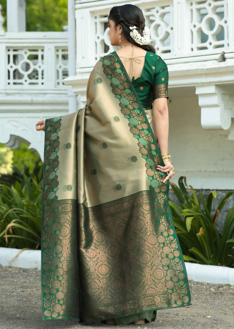 Pista green soft silk blend banarasi jacuard work designer party wear saree with unstitched blouse piece