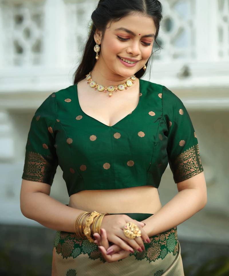 | • | Blouse | : | Color- Green / Fabric- Banarasi Silk |